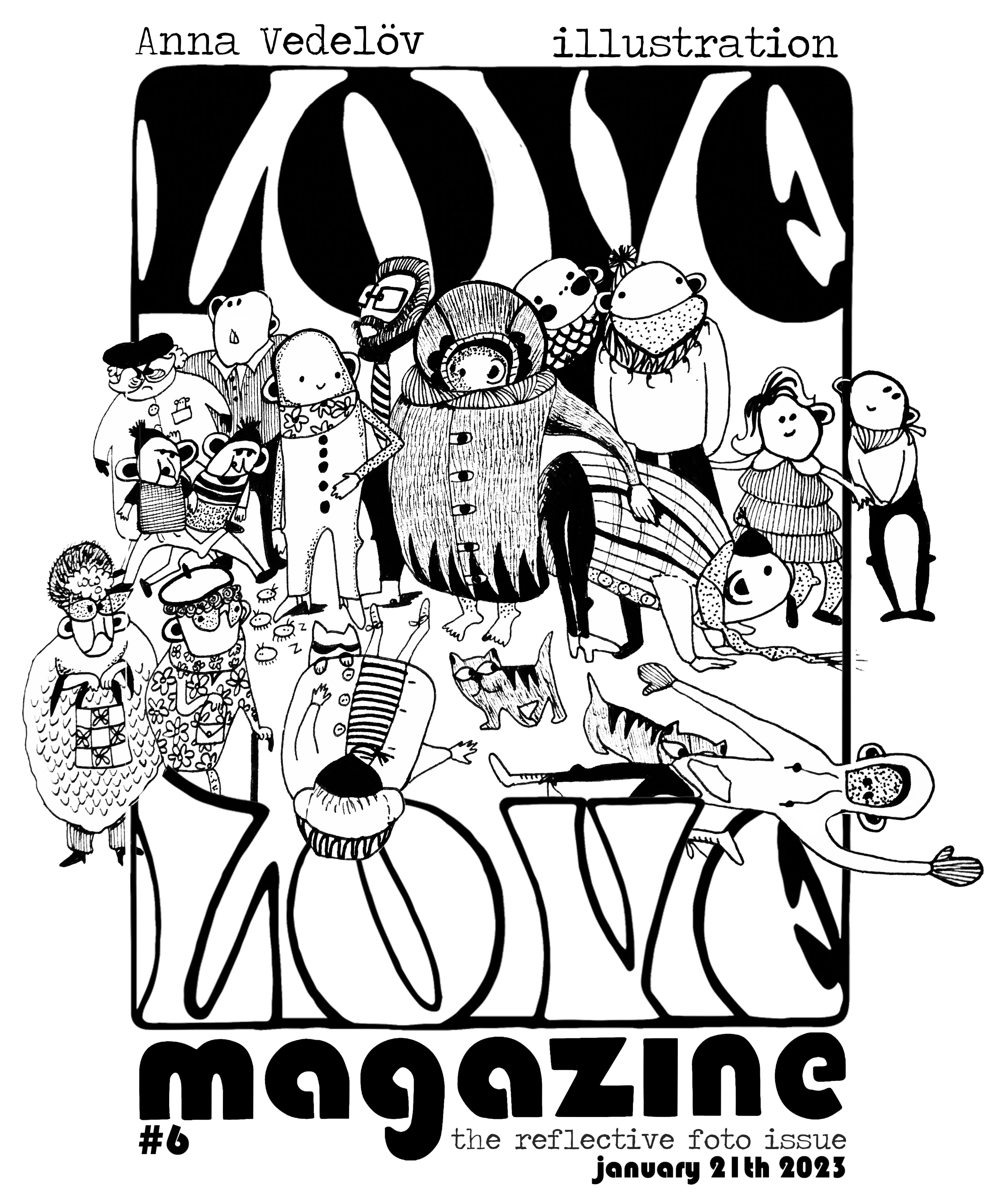 On January 21th we released the 6th issue of Love Love magazine – The Reflective Foto issue. In this issue we explore the perception of self and of others through images, film and photography, exploring the mirror image and the created self through the lens of all art forms: Poetry, prose, collage, illustration, photography, cartoons, interviews, articles and much more.