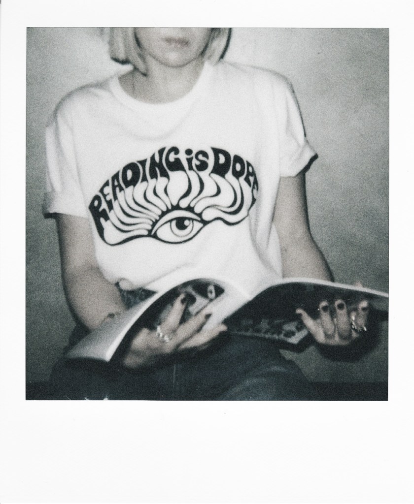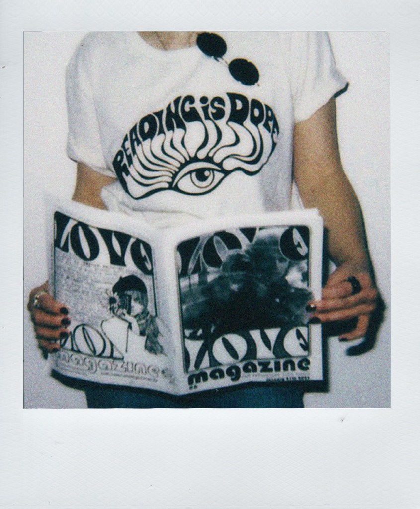 | Reading is Dope! Love Love magazine has created a t-shirt in collaboration with the French fashion brand Good Morning Keith. The result is a dope statement, illustrated by editor of Love Love, Lisa Marie Järlborn & printed with the finest velvet on the recycled organic, soft cotton of GMK in their Paris atelier. The t-shirt comes in cream white & the fit is iconic vintage unisex natural t-shirt with short sleeves and rounded collar. This t-shirt is now only on pre-sale, it will be shipped once we reach 30 orders. We hope you dig it! GET IT HERE: get Reading is Dope or on Shopify for PayPal: get Reading is Dope Thanks to Gerard Malanga for his inspiring fotomaton pictures of Factory Girl Edie Sedgwick & for his love and support for Love Love. Photos shot in Paris Buttes Chaumont. (c) Lisa Marie Järlborn Model: Jo Wedin Model wears a size L. Composition & Care: We advise you to wash this garment upside-down at low-temperature (30°) and to favor a natural drying. Sustainability: We have selected the finest organic cotton to realize this tee. The fabric is certified GOTS, OEKO-TEX Standard 100 et FAIR WEAR. These three labels guarantee quality and ethics all along the production process. Fits true to size, fits true to the sixties. Take your normal size. Those who are in between sizes should go up to the nearest size. Model wears a size L. Measurments in cm XS S M L XL A – Half Chest 46 49 52 55 58 B- Body Lenght 66 69 72 74 76 C – Sleeve Lenght 19.5 20.5 21.5 22.5 22.5 , |