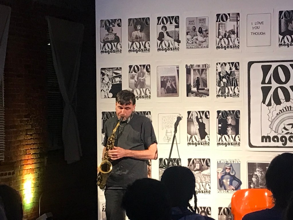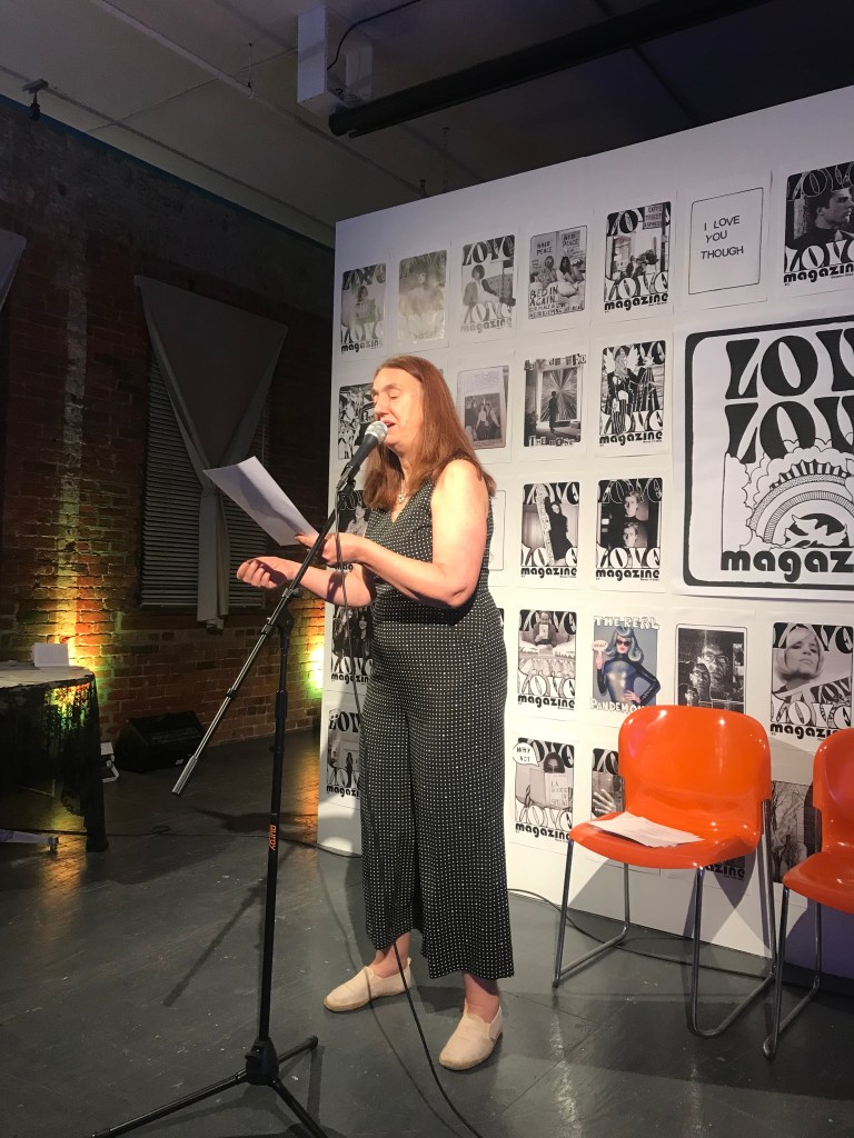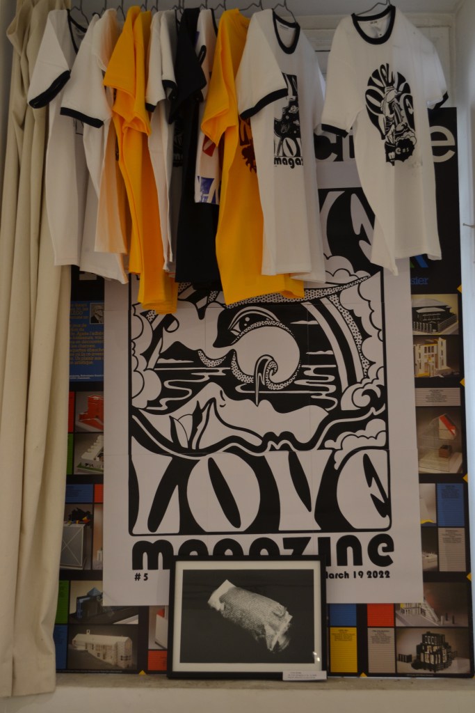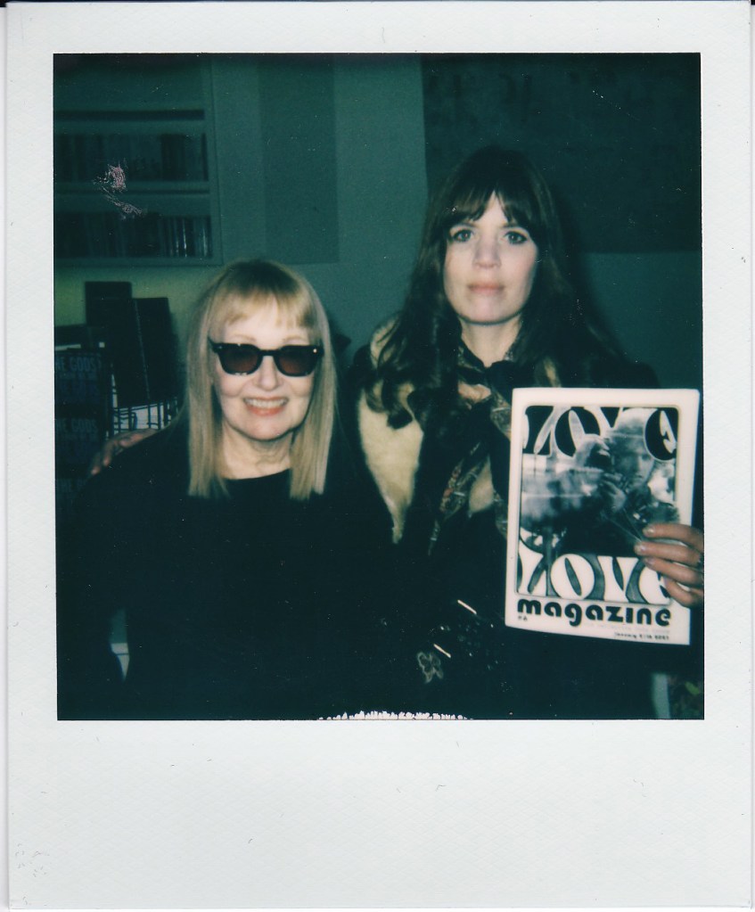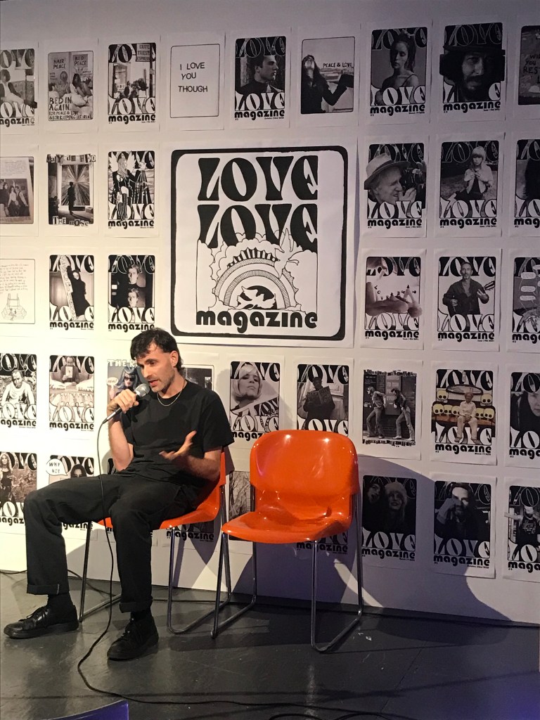 The latest publication of Love Love press was a compilation of Love Love material in a pocket sized Love Love 2019-2022 paperback of 160 pages, released on August 27 2022. Love Love #6 – The Reflective Foto issue – was released on January 21st 2023 in collaboration with Agnès b. and her La Fab gallery in Paris. On stage were artists Bibbe Hansen (The Factory, Fluxus, mother of musical artist Beck), Gabi Garbutt (UK) & Paul Shine (UK). Tree Carr (death doula & tarot reader) read everyone’s fortune in tarot cards.