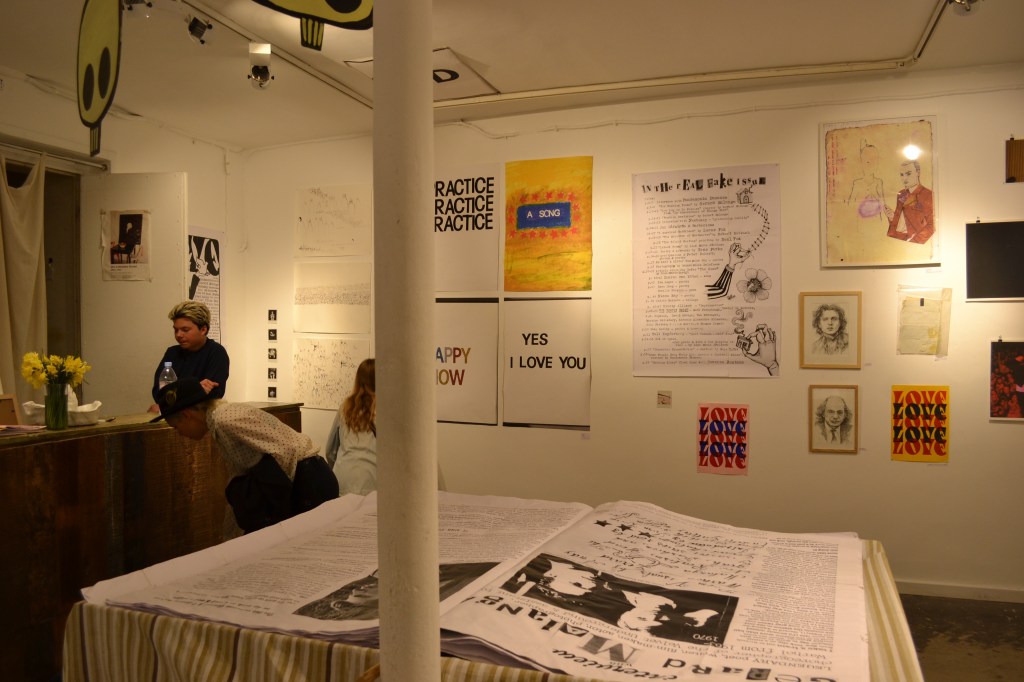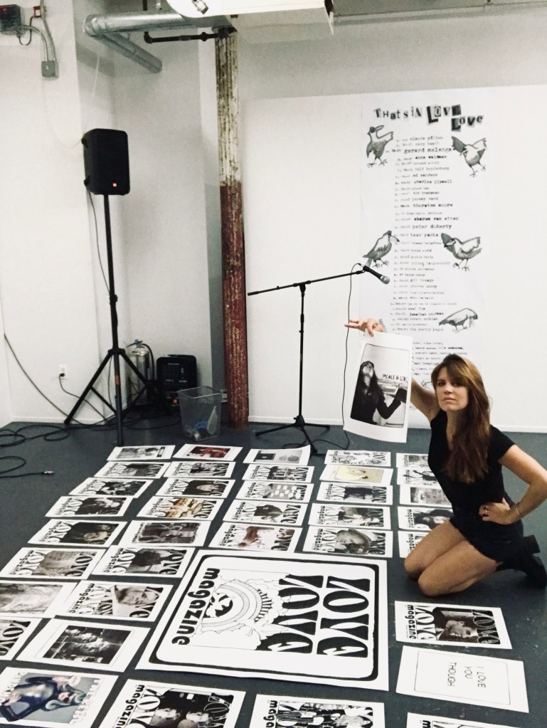 Love Love is about bringing people together both in mind & body & therefore great emphasis is put on exhibiting our Love Lovers’ art, poetry & music through events and exhibitions. For each issue the magazine has hosted events in Paris, New York & London, featuring artists like Gerard Malanga, Bibbe Hansen, Brisa Roché, Thomas Baignères, Oliver Ray, No Land, Devin Brahja Waldman & many others. For the release of issue #5, “The Real Fake” issue, the magazine organized an exhibition at 0FR bookstore gallery in Paris where artworks from contributors such as Peter Doherty, Gerard Malanga, Jonathan Richman, Neal Fox, Robert Rubbish, Sharon van Etten, Tess Parks, Ed Sanders, Tuli Kupferberg & many others were shown.
