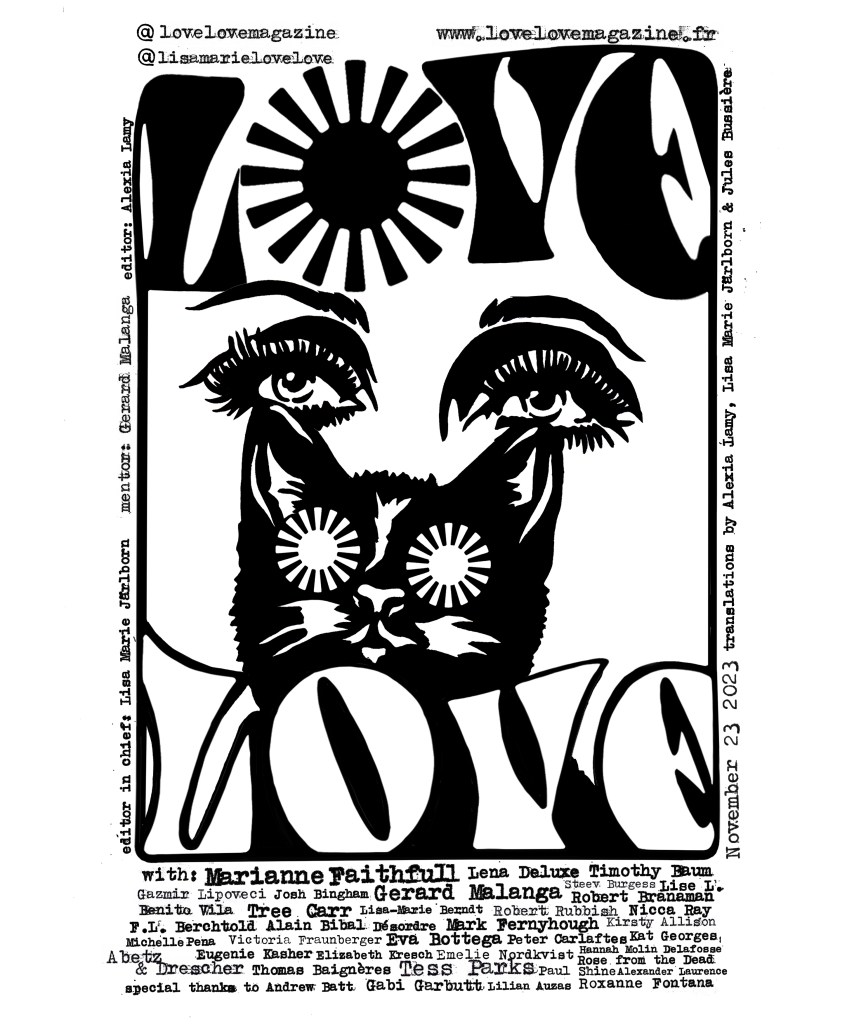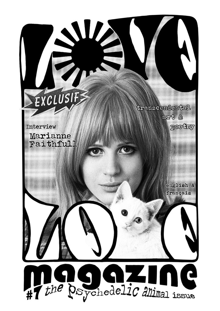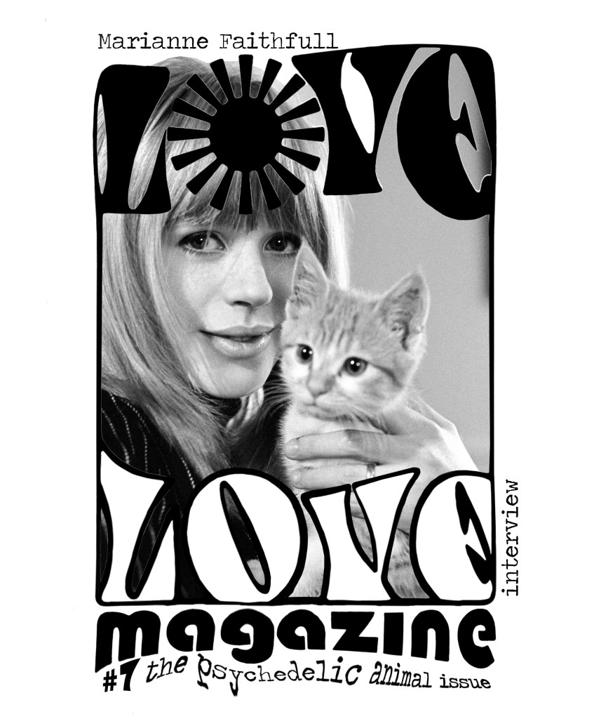 […] Love Love #7 The Psychedelic Animal issue features Marianne on the cover in a charming portrait holding a cat with heterochromatic eyes! The magazine is in A4 format and is 60 pages long. It comes in an all black and white version, and in a color cover version, which is screen-printed by hand in the Paris atelier by chief editor Lisa Marie Jarlborn. The magazine will hit the streets on November 23rd 2023 but you can pre-order your copy here. […]