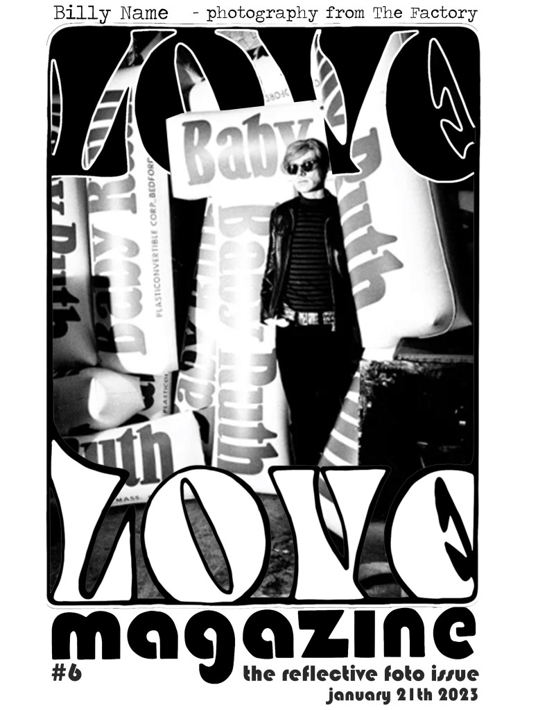 How have artists today been influenced by the work of Andy Warhol and Gerard Malanga, by icons such as Edie Sedgwick, music producer legends like Danny Fields (Ramones, Iggy and The Stooges), musical geniuses like John Cale, Nico and Jonathan Richman, photo extravaganzas like Billy Name and Dustin Pittman and many many more. Is there an equivalent to this golden silver era of explosive, inevitable pop art today? Do you feel part of the post Factory era? Do you feel a calling to contribute to Love Love #8 – The Post Factory issue? Then send us your submission!