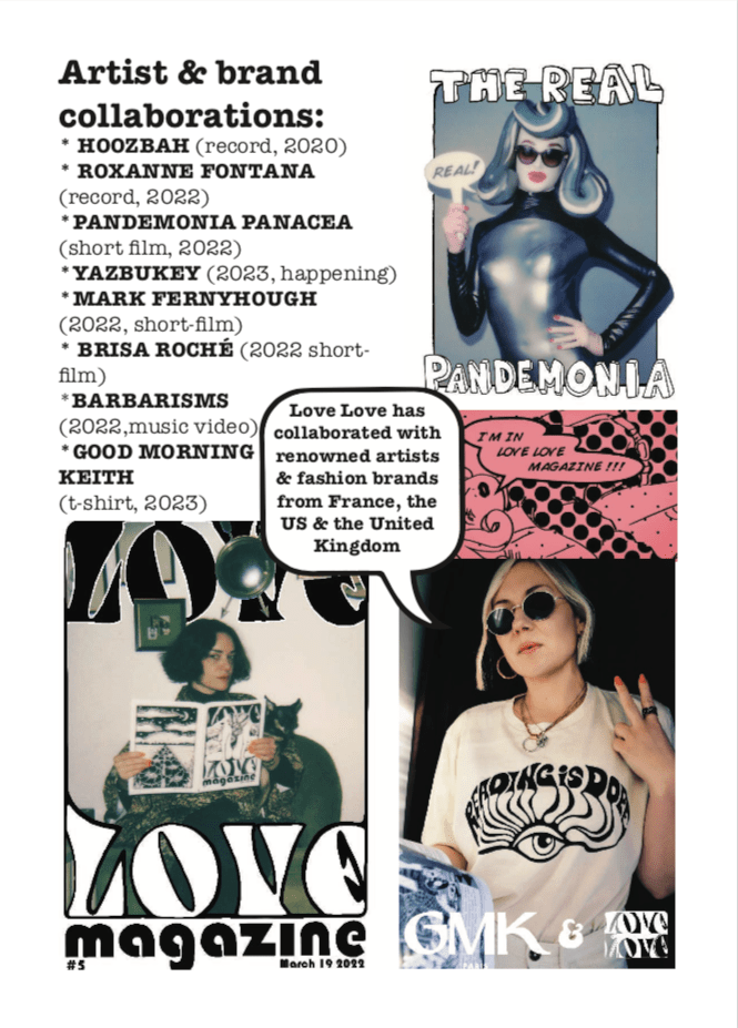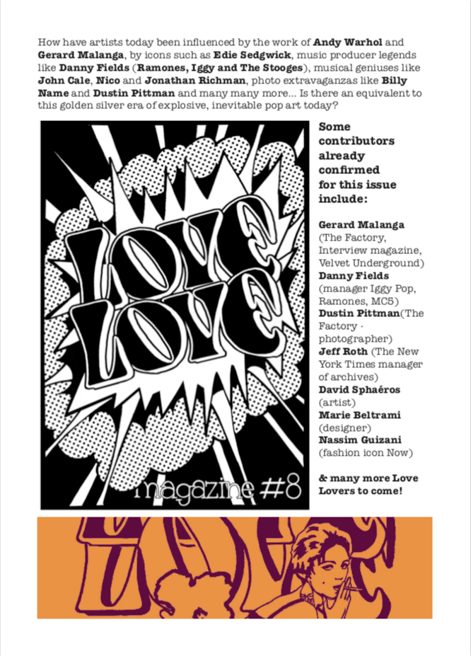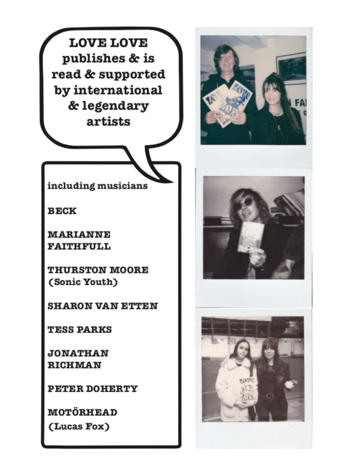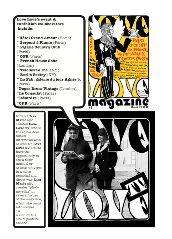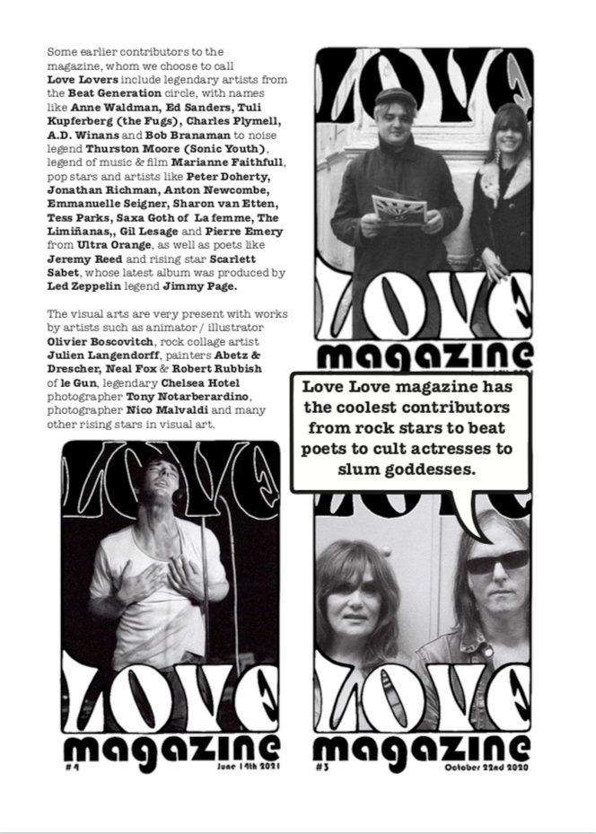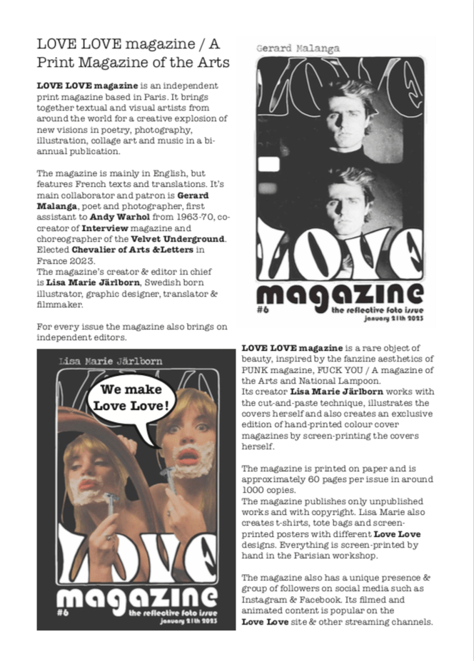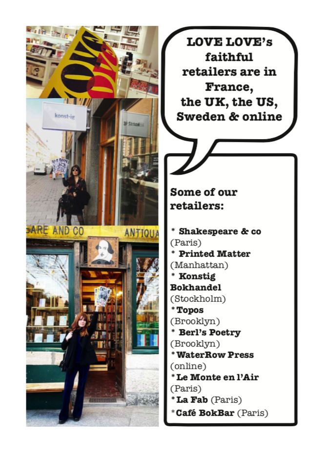 hey love lovers! Love Love is an underground print magazine that has never received any state funds, larger donations etc etc. Creator & chief editor is a a single mom in Paris, yep:)