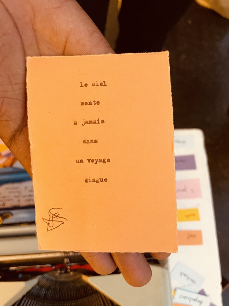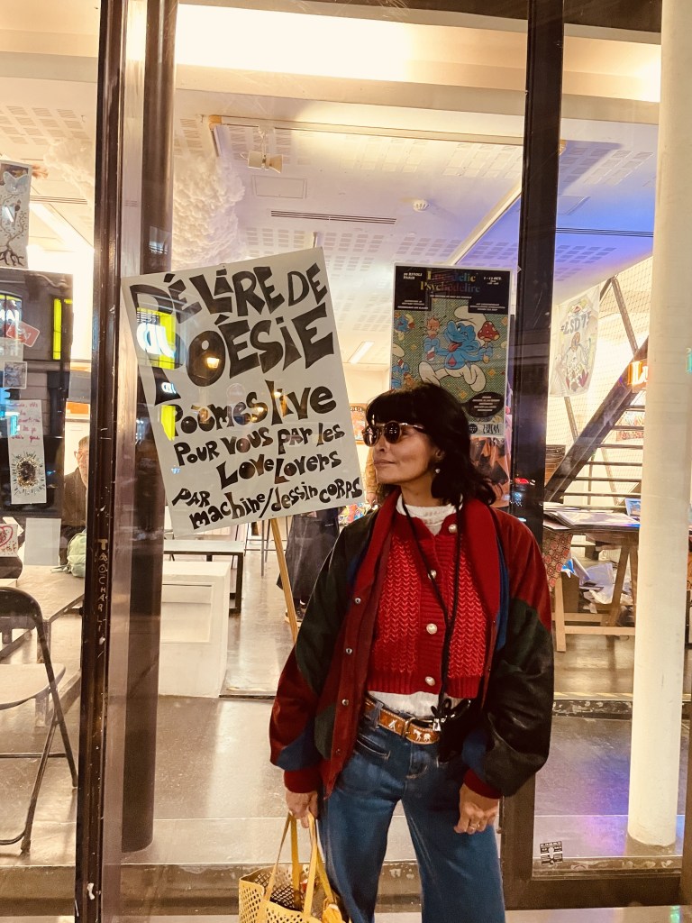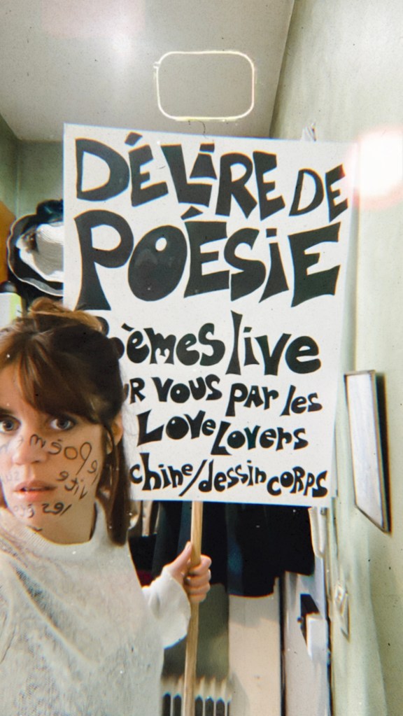 It was at 59 rue de Rivoli on October 5th. Several Parisian Love Lovers were there, with editor Lisa Marie, for a Poetry Delirium corner – where we improvised poetry for visitors in different ways: by writing on typewriters, by painting with body paint, by reciting, by music and by drawing. Thanks to all who came to our Poetry Delirium corner!
