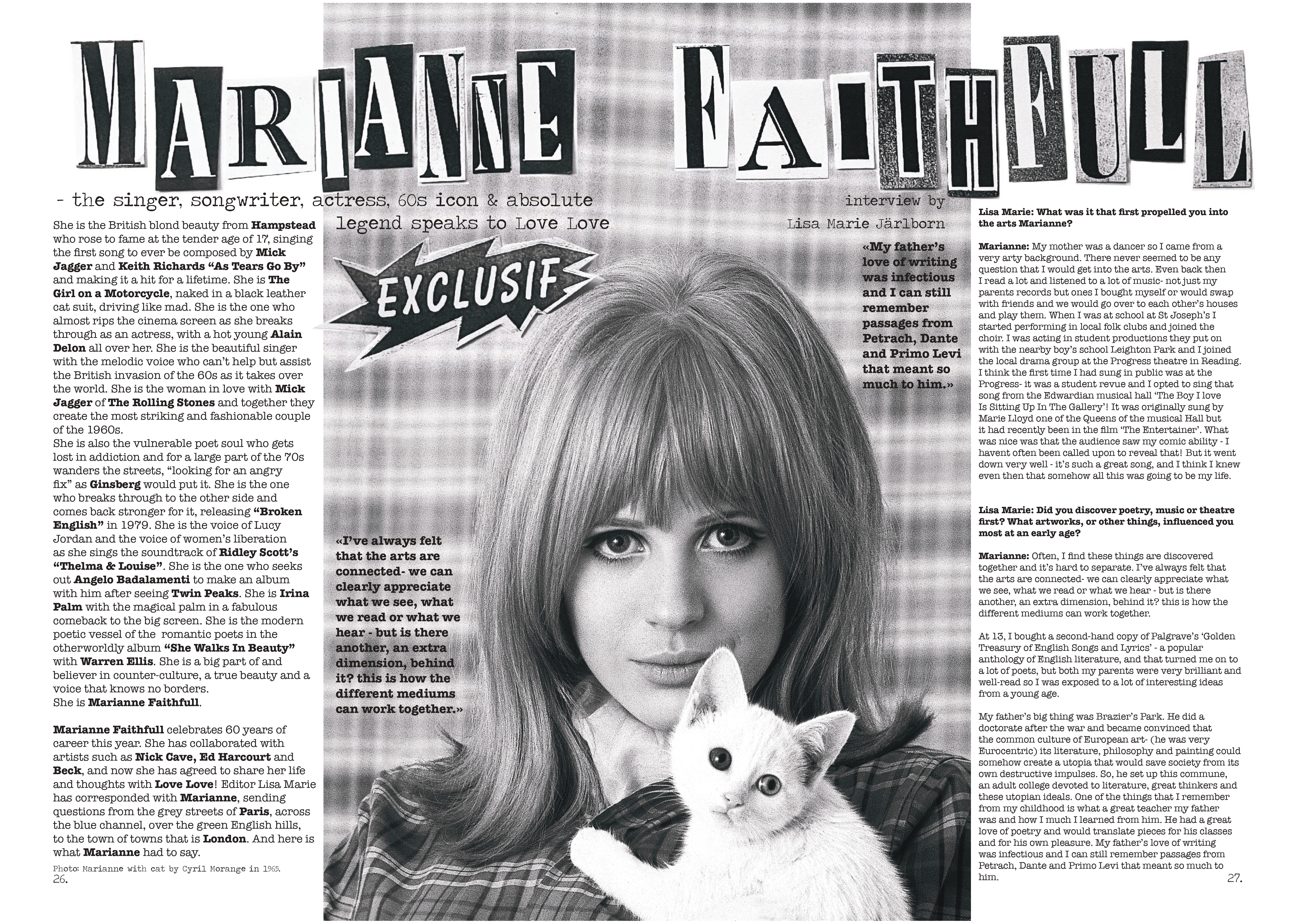 Marianne faithfull – the singer, songwriter, actress, 60s icon & absolute legend speaks to love love – interview by Lisa marie järlborn