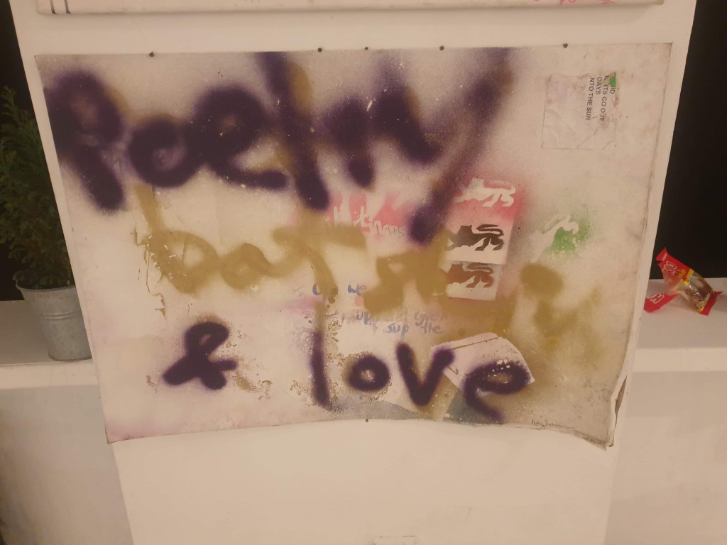 Peter: No, I’m joking, I’m joking. But it’s been a bit of a mad rush lately, the last couple of weeks. There is a couple that are a little bit older. It’s mainly stencils and using lyrics from some songs I’ve written recently.
