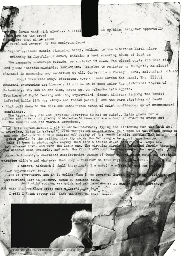 In Love Love #5 – The Real Fake issue – Peter’s writings were accompanied by photos by his friend, photographer & event planner pretty malina. These typewritten pages & photographs were also exhibited at The Real Fake exhibition at 0FR in Paris in March 2022.