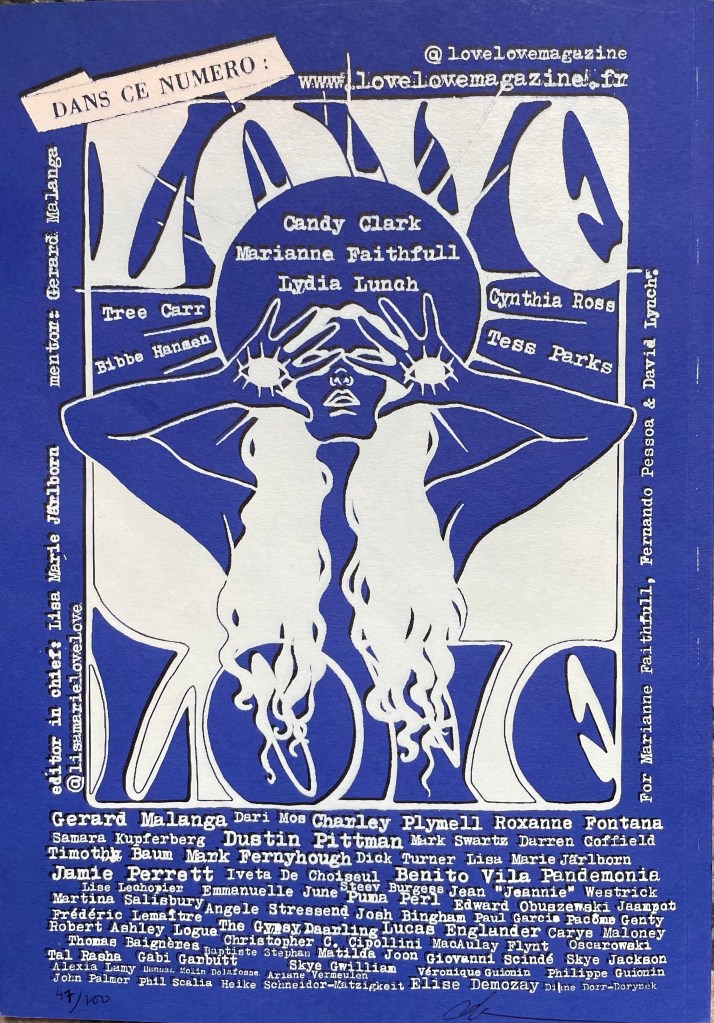 This blue edition is coming out later, because it demanded a bit of work. Love Love editor Lisa Marie has handprinted the covers with screen-print technique three times, two on the front cover and one on the back cover to create the dreamiest look possible. Available in 50 to 90 copies, demanding on how printing goes. For now 35 copies have ben printed this way. It is a meticulous and precise work & this copy of our Dream issue is therefore not only a magazine, but a beautifully handcrafted item for your collection.